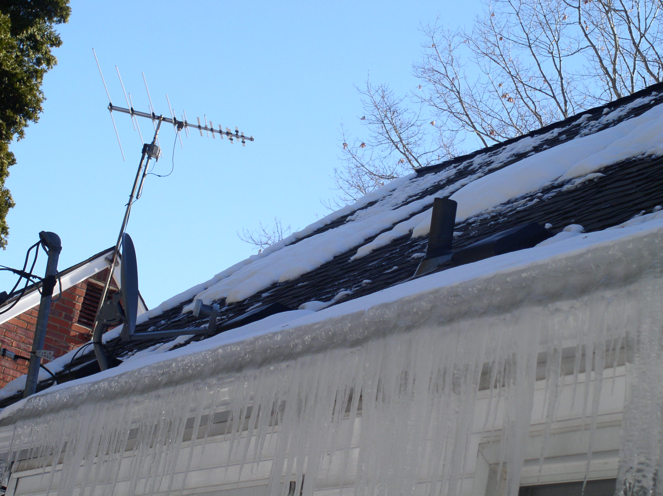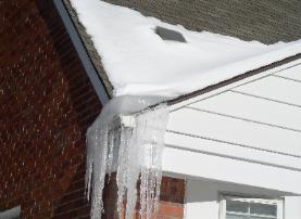 | WHEN THE OUTSIDE TEMPERATURE CAN NOT OFFSET THE HEAT OF THE INSIDE TEMPERATURE THE SNOW BEGINS TO MELT. BECAUSE HEAT RISES, THE HIGHER YOU GO IN YOUR ATTIC THE HOTTER IT GETS AND THE LOWER YOU GO THE COOLER IT GETS. AND AS THE SNOW MELTS AND THE WATER RUNS DOWN THE ROOF IT COOLS DOWN AND BEGINS TO RE-FREEZE. AS MORE AND MORE WATER TRIES TO MAKE IT DOWN THE SLOPE IT IS TRAPPED AS IT REACHES THE FROZEN ICE THAT IS NOW FORMING AT THE COLDEST PORTION OF THE HOUSE (USUALLY ONE TO THREE FEET ABOVE THE GUTTER). AS THE DAYS PASS AND THE PROCESS CONTINUES THE ICE DAM INCREASES IN SIZE CREATING A BOWL. IF THE INSIDE TEMPERATURE OVER POWERS THE OUTSIDE INCREASING THE FLOW OF WATER THE BOWL WILL THEN FILL UP WITH WATER. THE LARGER THE DAM THE MORE WATER IT WILL HOLD ALLOWING WATER TO PENETRATE YOUR ROOFING MATERIAL. ICE SHIELD IN OUR EXPERIENCE MAKES LITTLE DIFFERENCE IN THE PERFORMANCE OF A ROOF WHEN ICE DAMS ARE PRESENT.( EVERY NAIL AND OR STAPLE THAT PENETRATES THE ICE SHIELD MATERIAL IS AN OPPORTUNITY FOR WATER TO ENTER YOUR HOME). HEAT TAPE IS IN MOST CASES NOT EFFECTIVE BECAUSE IT ONLY HEATS THE IMMEDIATE AREA THAT IT IS LAID. (IN OUR EXPERIENCE YOU WOULD HAVE TO COVER EVERY SQUARE INCH OF YOU ROOF TO GENERATE AND SUSTAIN ENOUGH HEAT TO BE EFFECTIVE IN THE CONDITIONS THAT ARE CONDUCIVE TO THE MAKING OF ICE DAMS) THE USE OF ICE MELTING CHEMICALS CAUSE MORE DAMAGE THAN DOING NOTHING AT ALL. THESE TYPES OF PRODUCTS ARE DAMAGING NOT ONLY TO YOUR ROOFING MATERIALS AND GUTTER, IT CAN KILL ANY LANDSCAPING PLANTS THAT IT COMES IN CONTACT WITH. ALTHOUGH THE GUTTER AND ROOFING INDUSTRY WOULD BENEFIT FROM CHOPPING THE ICE FROM YOUR ROOF AND GUTTERS THIS ALSO CAUSES MORE DAMAGE THAN DOING NOTHING AT ALL. HACKING HOLES IN YOUR GUTTERS AND SHINGLES CAN CAUSE HUNDREDS AND POSSIBLY THOUSANDS OF DOLLARS IN DAMAGE. USING A WATER HOSE TO MELT THE ICE IS THE BEST WAY TO REMOVE IT WHEN DAMS HAVE ALREADY FORMED. IN OUR OPINION THE ONLY EFFECTIVE SOLUTION FOR THE PREVENTION OF ICE DAMS IS TO REMOVE THE SNOW FROM YOUR ROOF. |